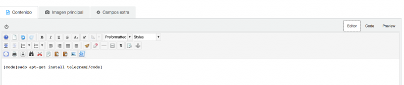 ¿Puedes probar el botón de "Insertar código" a ver si te muestra mejor los comandos de terminal o código que escribas?