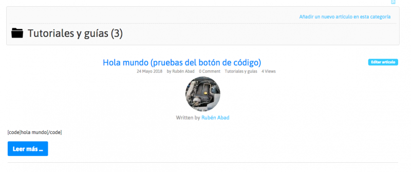 Y, en la sección de Tutoriales y Guías, veo fallos en la previsualización del código:
