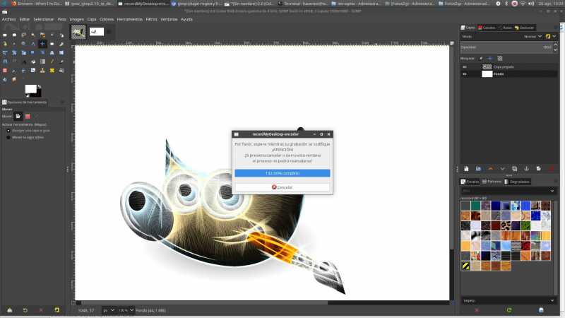 Después de grabar, hay que dejar un rato que recordMyDesktop renderice y generalmente ese rato no estoy delante del ordenador, pero un par de veces que he mirado, las dos me ha mostrado un porcentaje de renderizado mayor del 100%, lo cual mosquea bastante, ya que siempre está el miedo de perder el trabajo realizado. Sin embargo, luego el vídeo se puede ver o editar sin problemas.