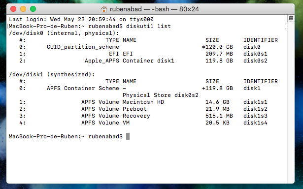 -Teclearé ahora en la Terminal el siguiente comando: